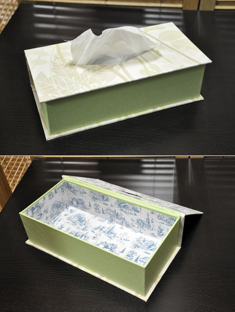 カルトナージュ体験教室で、ティッシュボックスを教えて頂きました。