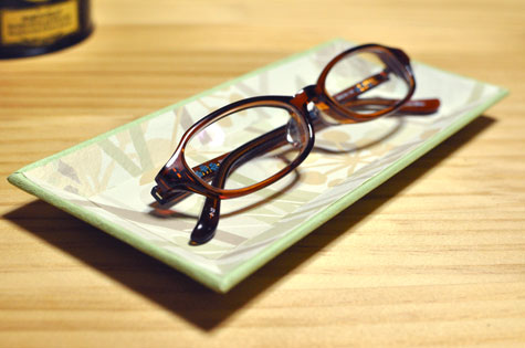 カルトナージュの浅型トレイ カルトナージュ作品 2011.05.192023.05.13 私は非常~~~に視力が悪くて、ふだん使い用の0.5~0.6程度見えるメガネと、遠出や運転用の1.0程度見えるメガネを使い分けています。 ただ頻繁にかけかえるのでメガネケースへ戻すのが面倒くさくて……。 パッと置いておけるトレイを作ることにしました。 これでそこらへんに適当に置いて行方不明になることもなく、パッと置いてサッとかけて、とても便利になりました♪