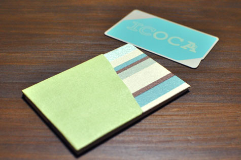 カルトナージュのパスケース カルトナージュ作品 2011.05.202023.05.13 関西人にはおなじみのイコカケースを作りました。 ずっとお財布に入れて、お財布ごと改札機に当てていましたが、バッグの外ポケットに入る薄型パスケースのほうが絶対便利だなぁ……と常々思っていたのです。 裏面は時刻表などを入れておけるポケットになっています。