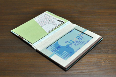 カルトナージュの二つ折りパスケース カルトナージュ作品 2011.05.212023.05.13 自分用のパスケースを作ったら妹にもせがまれて、こんどは二つ折りのパスケースを作ることになりました。 趣味が似通っているので柄はおそろいです。(ちなみに色違いやおそろいの服もけっこう持ってます……) ↑内側はケースを開かなくても使えるICカード入れと、時刻表などを入れておくポケットに。 ↑外側には改札機を通さなければいけない定期券を入れられるポケットをつけました。さっそく愛用しているようです。