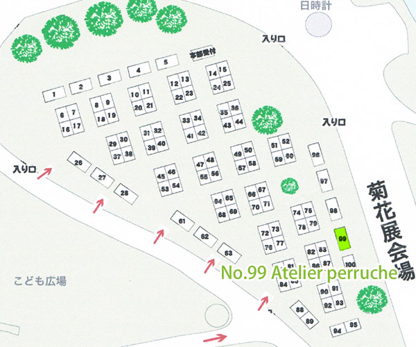 ※ブース東側で菊花展が開催されているため、広場の出入口は北か西側になります。