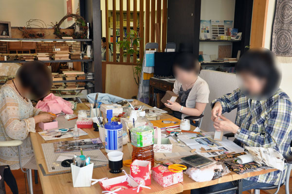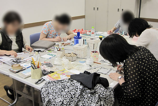 体験会はメモパッドカバーを作りました♪ 3名がカルトナージュ初体験!