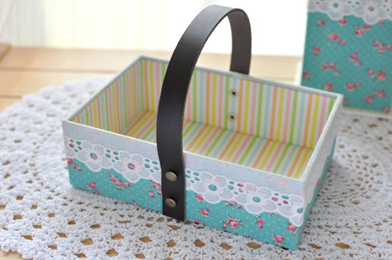★本革持ち手つきバスケット<ターコイズカラー>