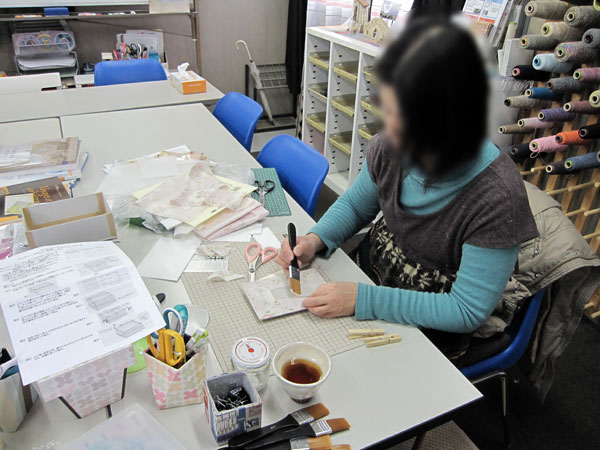 Nさんはオルゴール型のキットレッスンで箱作りの復習です。