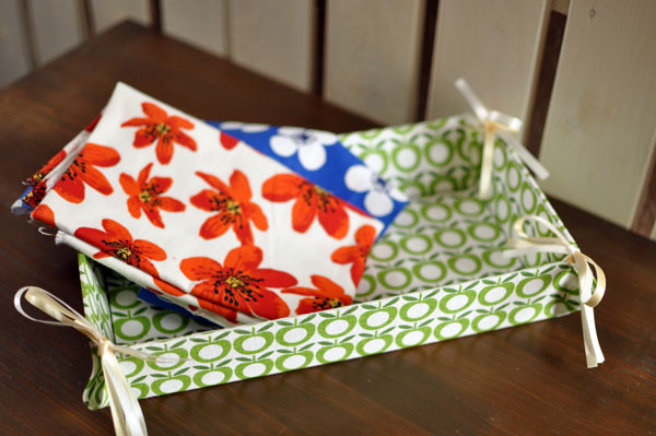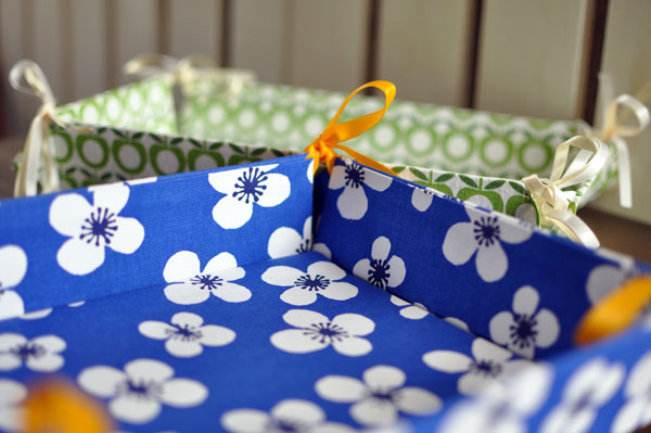 鮮やかなプリントの北欧の生地を使って、