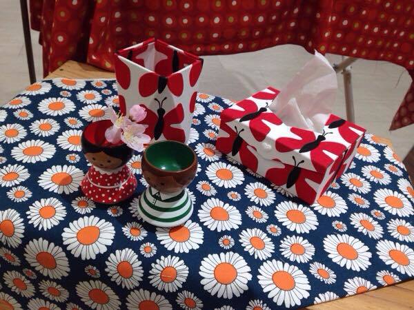 北欧生地を使ったカルトナージュ作品を展示して頂いています♪