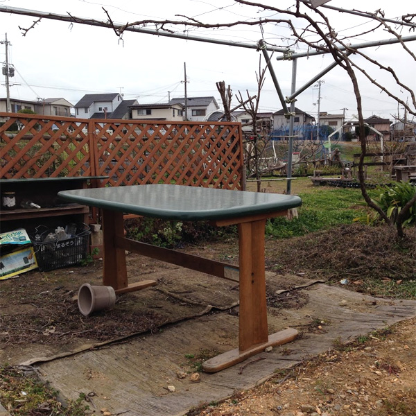 ぶどう棚の下でガーデンテーブルに生まれ変わっていました!