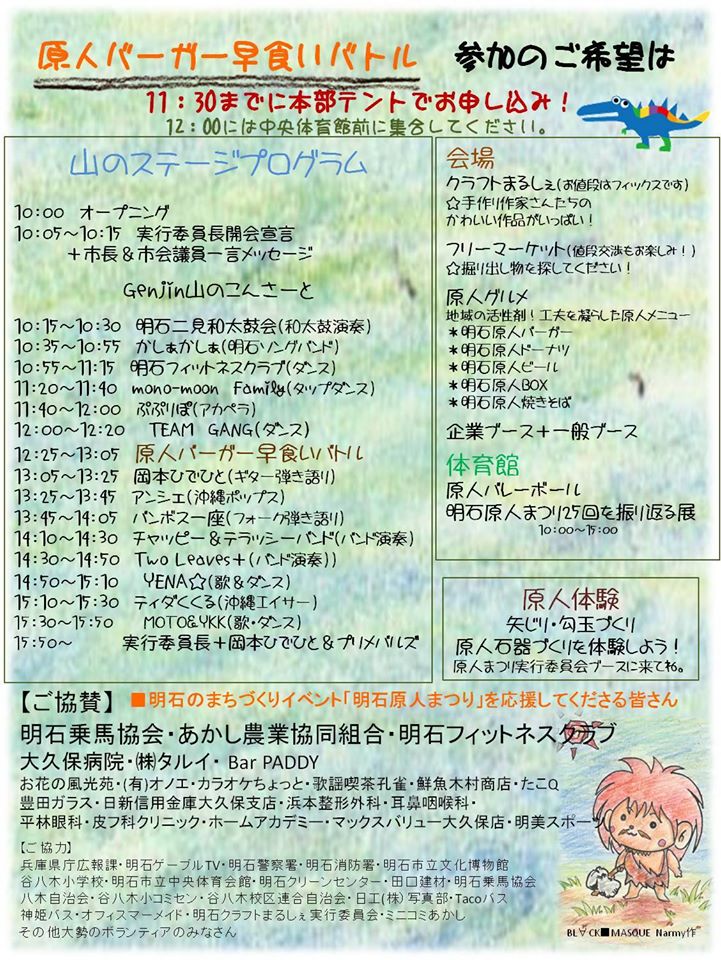 いよいよ今週末に迫って参りました、年1回のお楽しみ『明石原人まつり』!