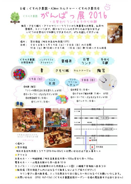 魚住の茨木酒造さんにて、明日までくすのき農園&エイミーカルチャーの
