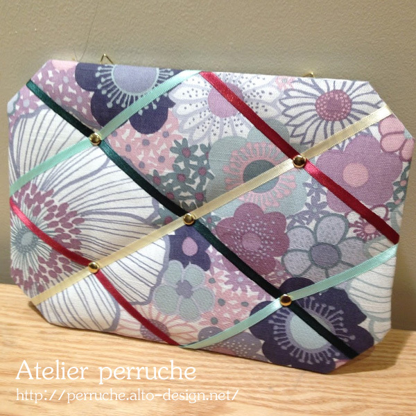 落ち着いた色みの生地にリボンのカラーで遊びを入れられました。