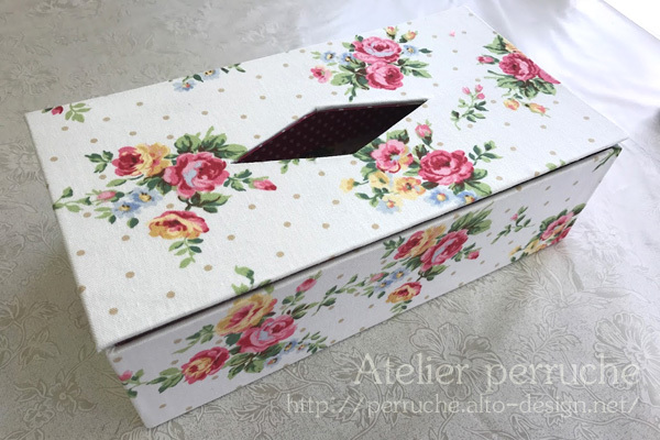 ▼Nさんが作られた、プレゼントにされるというティッシュボックス。