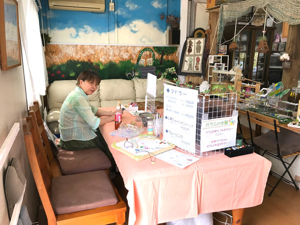 入って左側はまめだ工房さんのガラス細工体験ワークショップ。