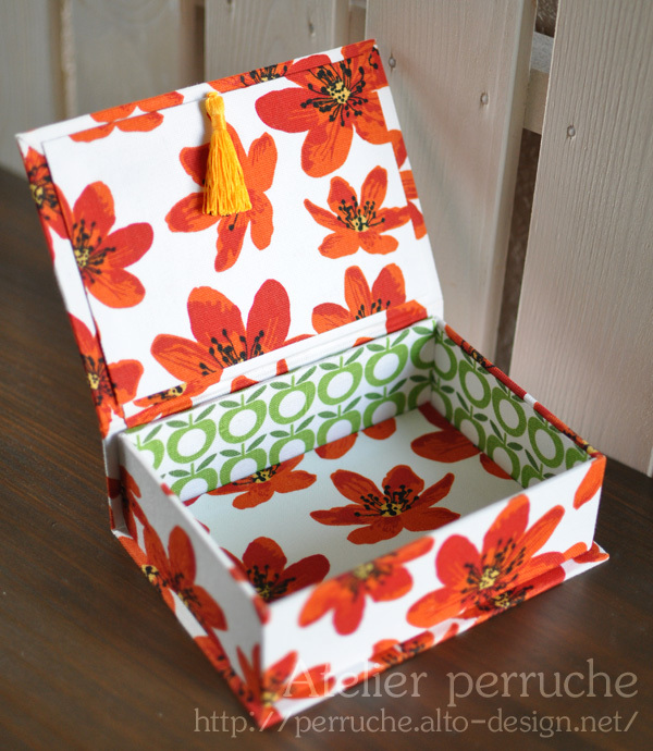 フタ・背・底がひとつながりになった本のような形の箱です。